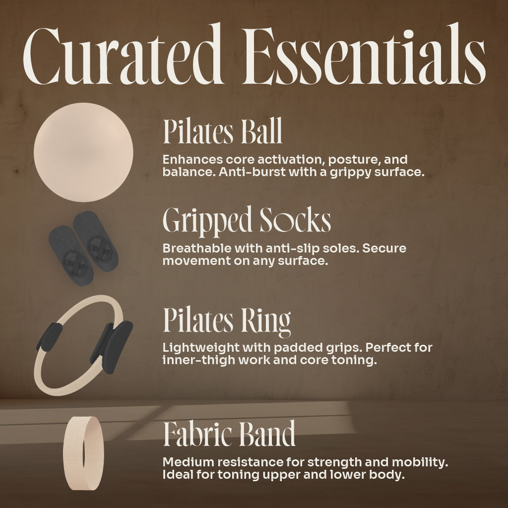 All your Pilates essentials in one beautifully curated box — designed to support a balanced, mindful movement practice wherever you are.