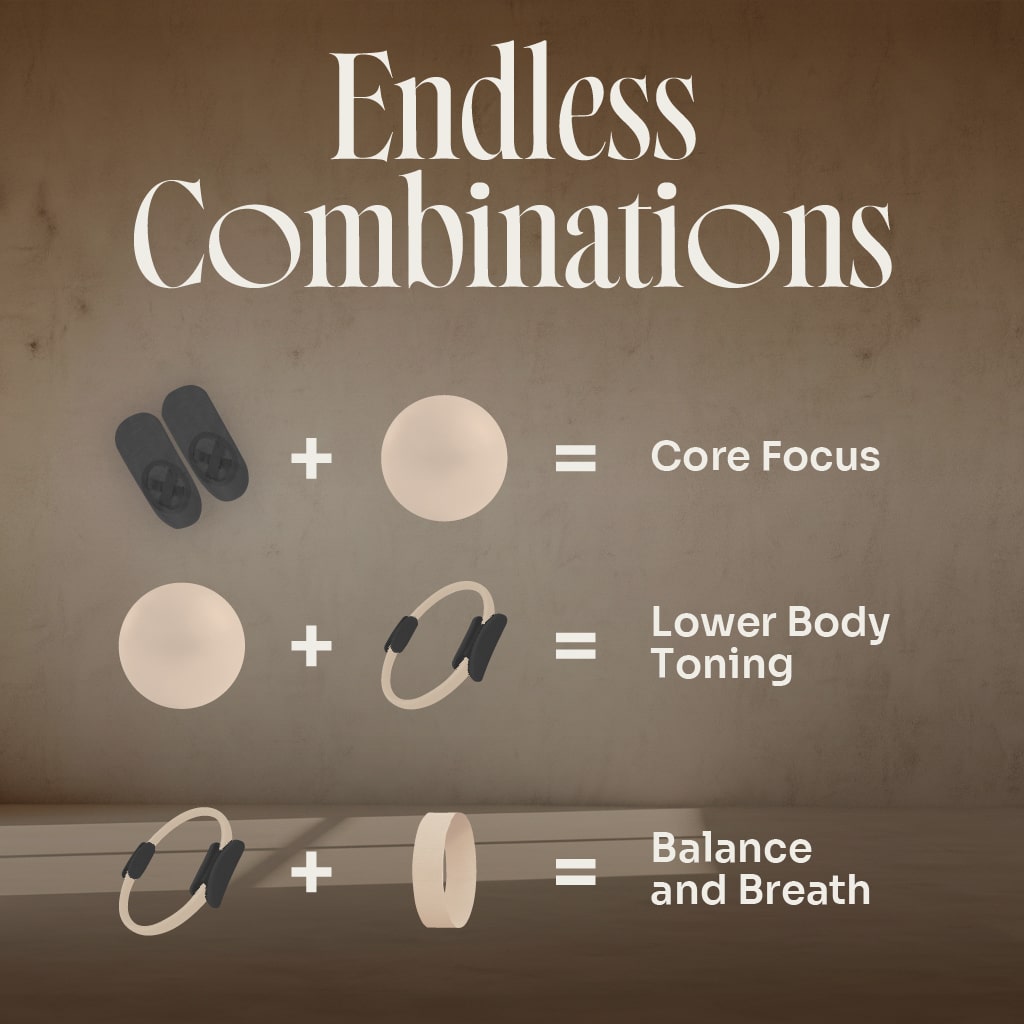 The Myga Pilates Kit brings together four core tools to help you build strength, improve posture, and move with intention. Whether you're practicing at home, in the studio, or on retreat, this set offers everything you need for a focused and effective low-impact workout.