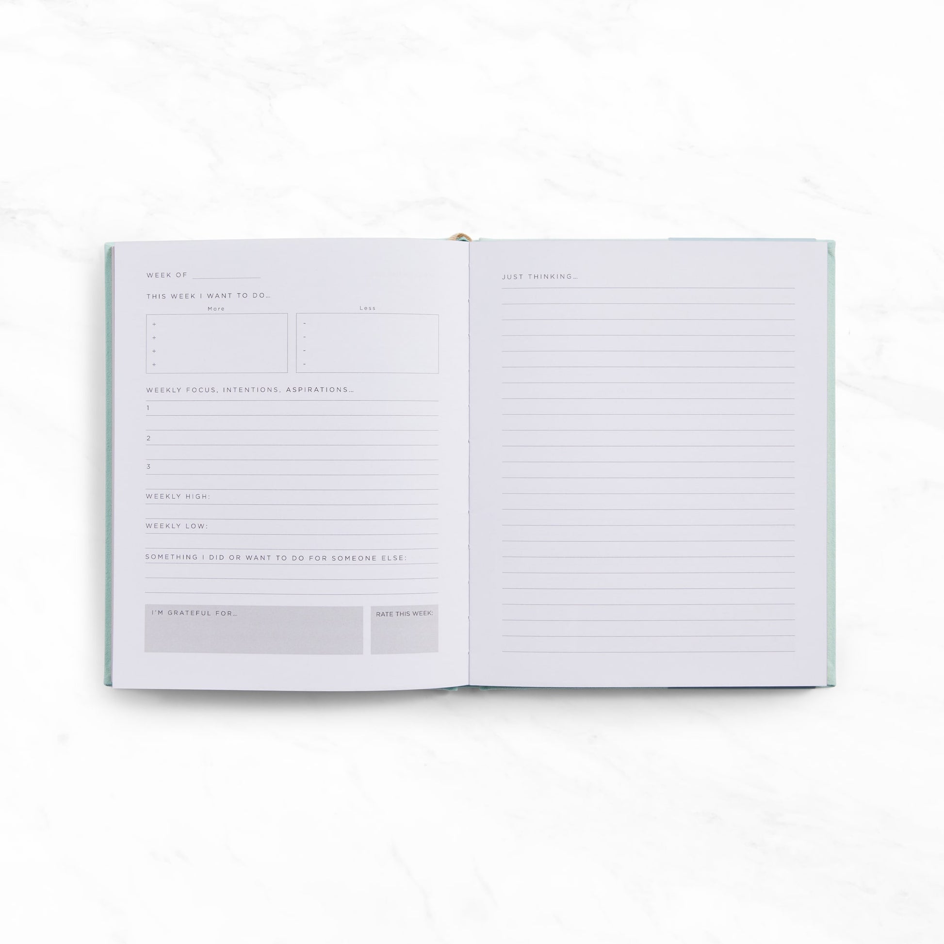 This thoughtful journal is designed to help create the perfect balance between setting goals and appreciating what you have. With 160 undated pages to document your intentions and reflect on your progress, it's the perfect tool for aiming high while appreciating life's little details. With space for a monthly overview, habit tracker, weekly focus, and more, it's the perfect companion for living a mindful and intentional life.