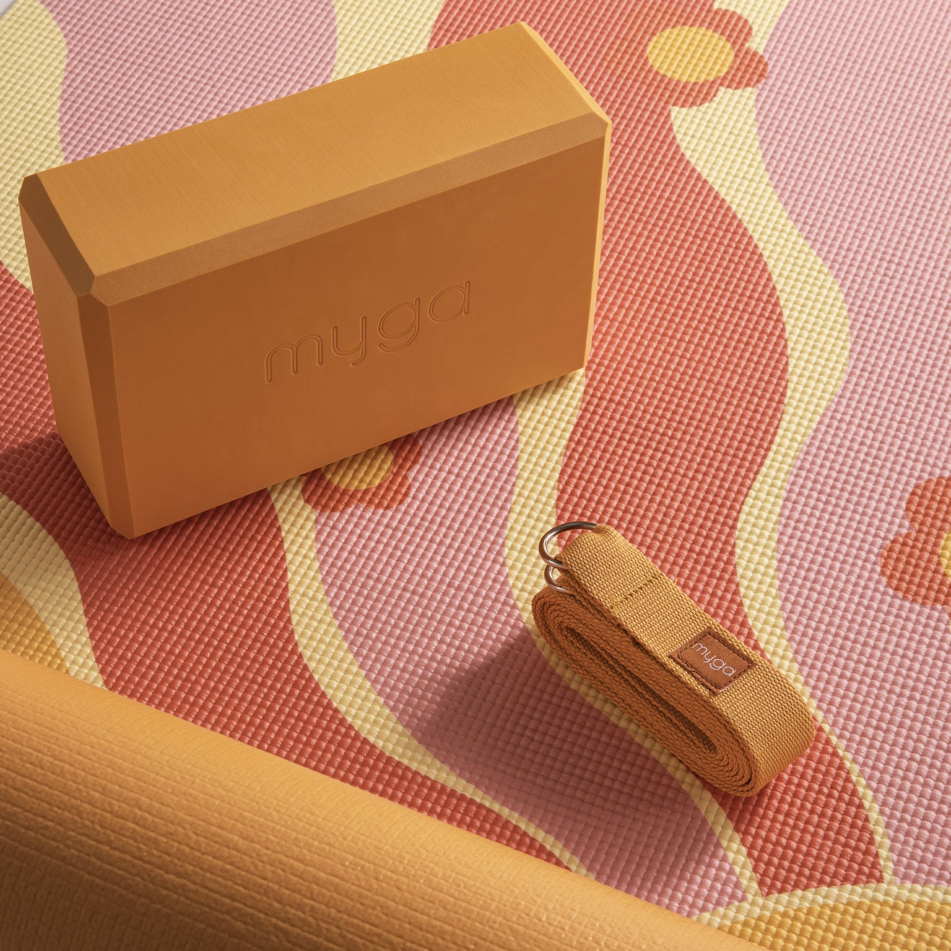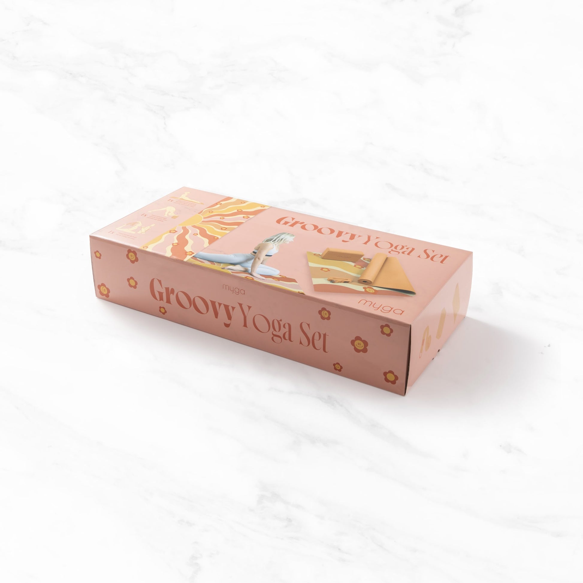 Our team of yogis has carefully curated this groovy-themed yoga starter kit, combining a fun and cheerful design with essential yoga props to make your practice safe, enjoyable, and supportive. Featuring a vibrant groovy pattern in bold retro tones, this kit brings a playful touch to your yoga journey. Perfect for beginners and experienced yogis alike.