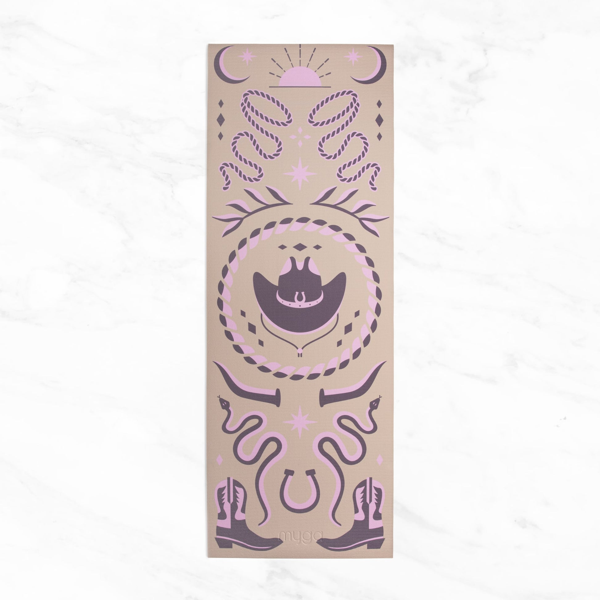 Step into your yoga flow with a mat as bold as your spirit! The unique cowgirl-themed design, celebrates individuality and adventure. Inspired by the rising cowgirl aesthetic seen in trends shaped by icons like Taylor Swift, this mat blends Americana charm with a touch of boho flair, making it a standout for free-spirited yogis.