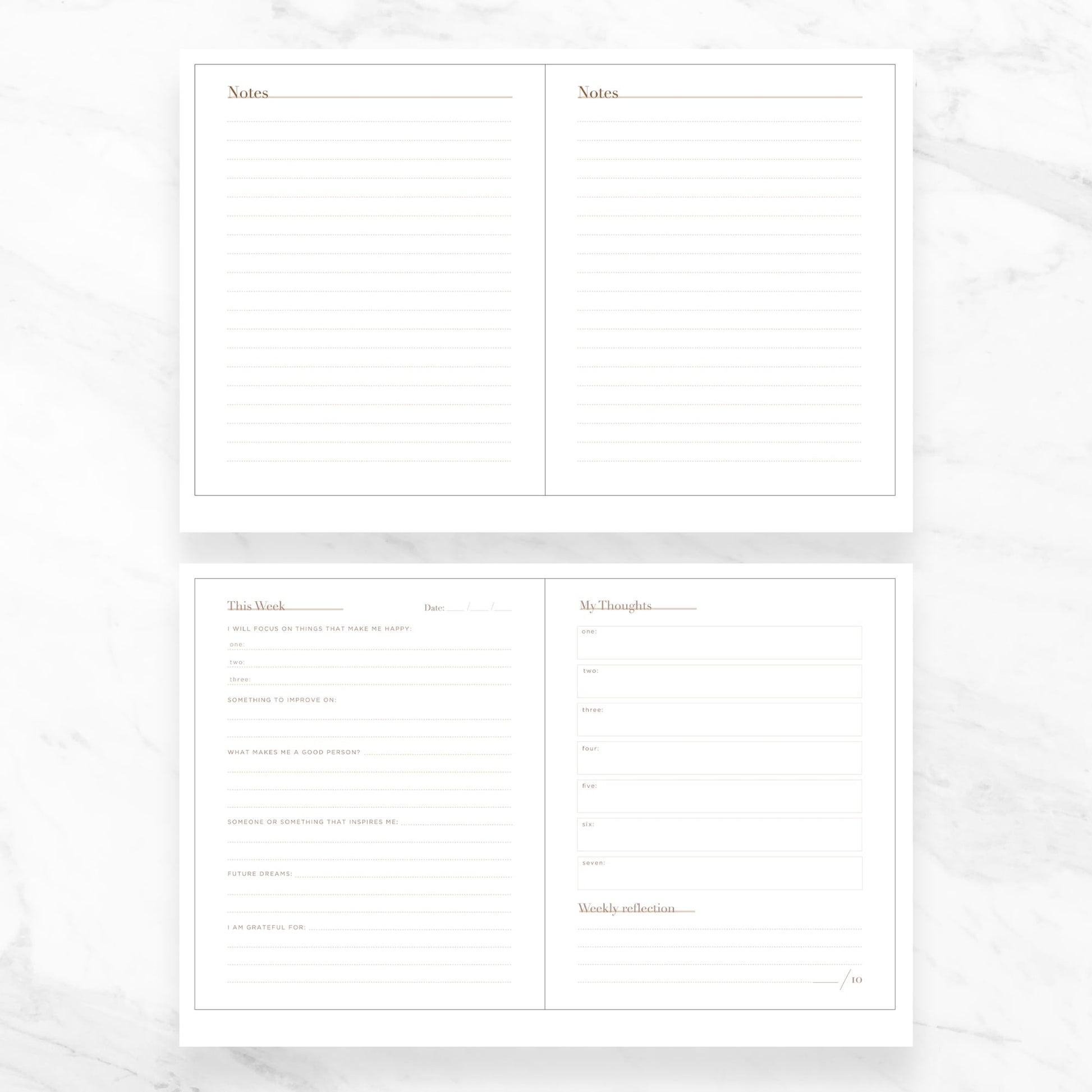 This mindful journal is an exclusive way to nurture yourself, providing weekly focus on what makes you happy, what to improve on, and what makes you a good person, as well as someone or something that inspires you. Look to the future with dreams, and reflect on your gratitude with weekly reflections. Discover a sophisticated and elegant way to nurture your growth and well-being.