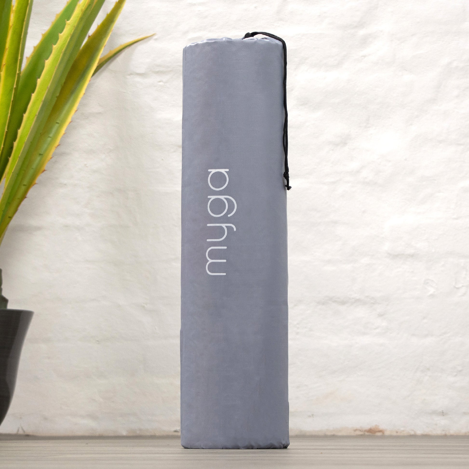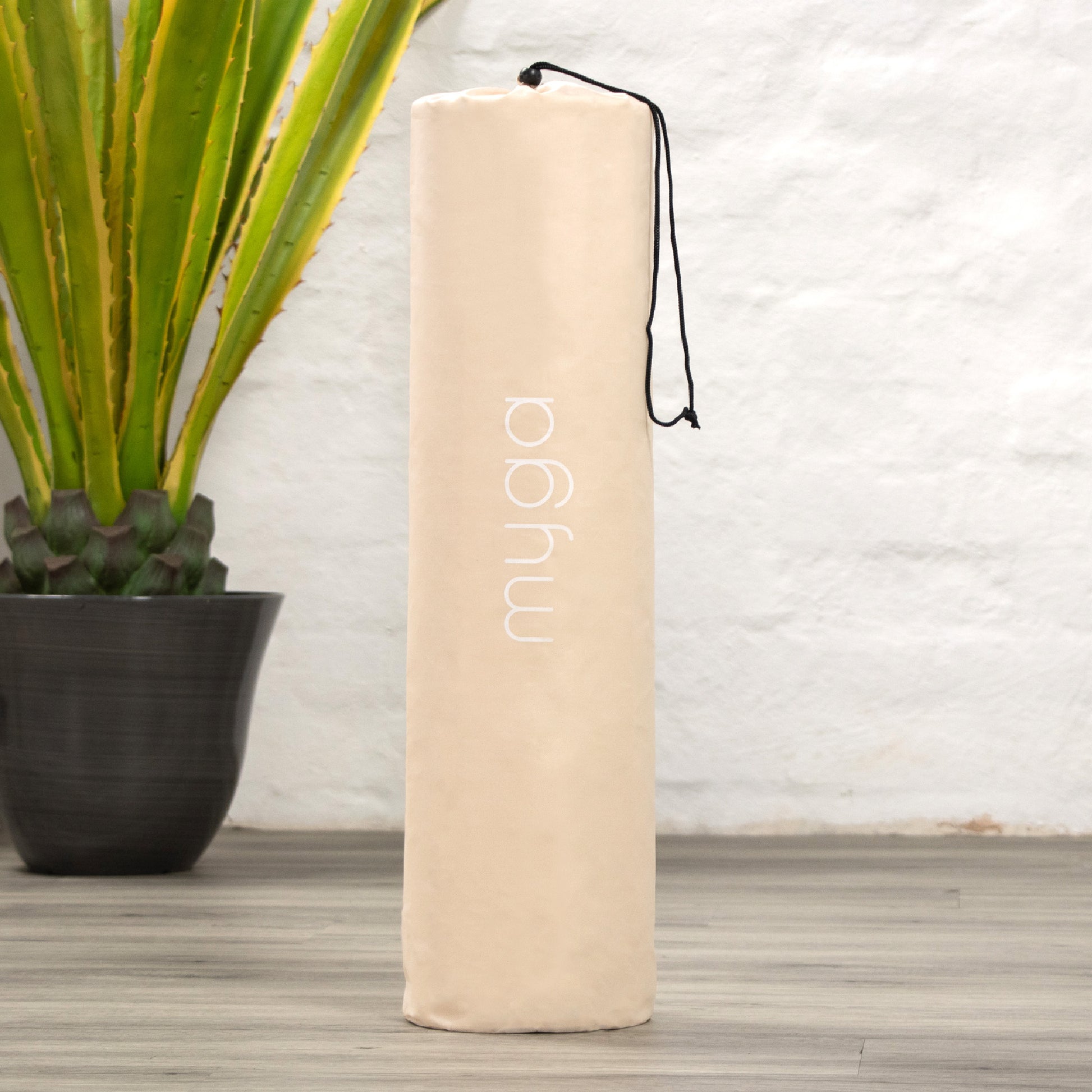 A minimalistic bag for the protected transport of your yoga mat. The bag is particularly light, water-repellent and easy to clean. Suitable for all yoga mats that do not exceed a length of 65cm and a diameter of 14cm when rolled up as well as a weight above 1 kg.
