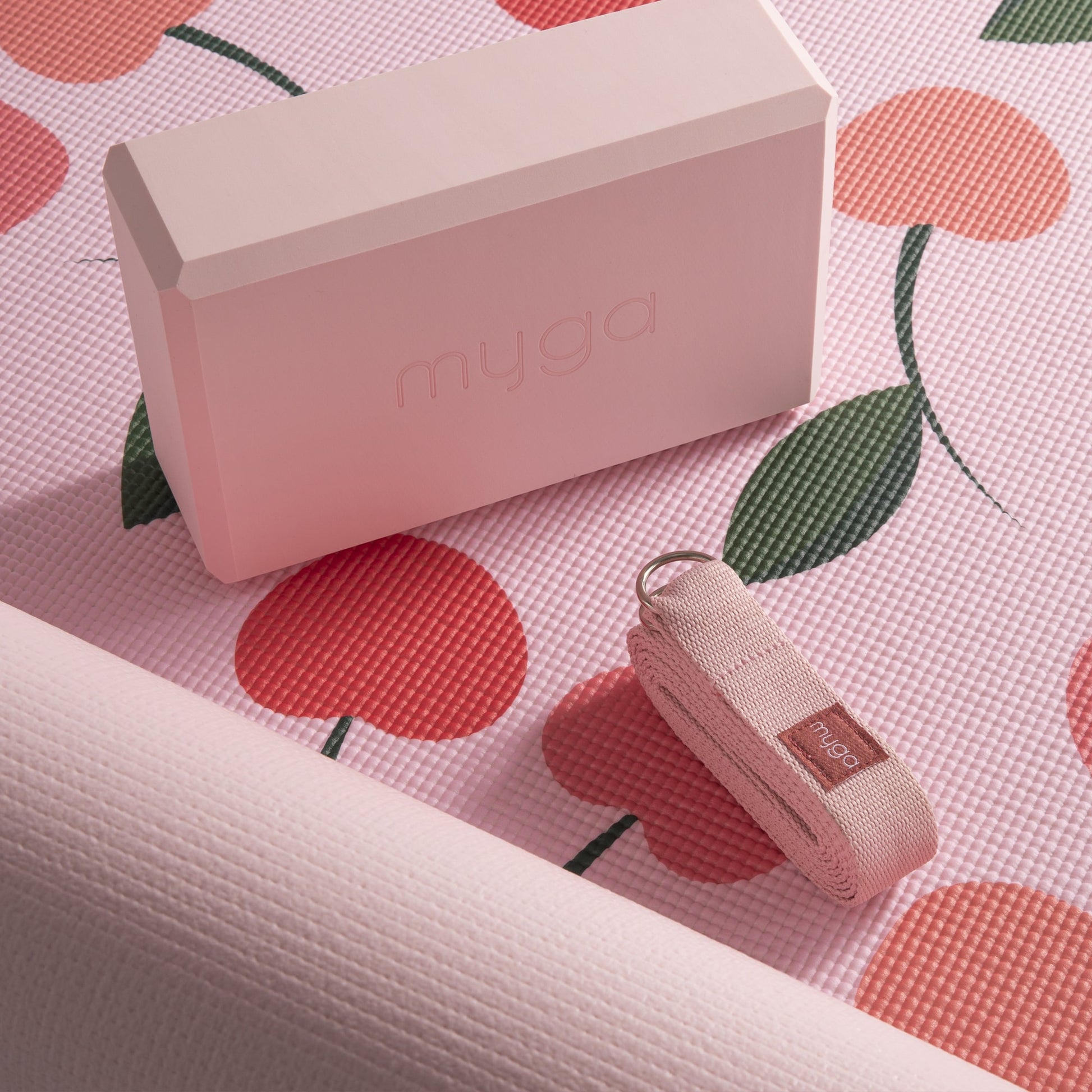 Our team of yogis has thoughtfully designed this cheerful and vibrant yoga starter set to bring joy, inspiration, and a touch of love to your practice. Featuring a charming heart-shaped cherry design, this set symbolises vitality, renewal, and positivity—perfect for yogis seeking balance, flexibility, and inner peace.