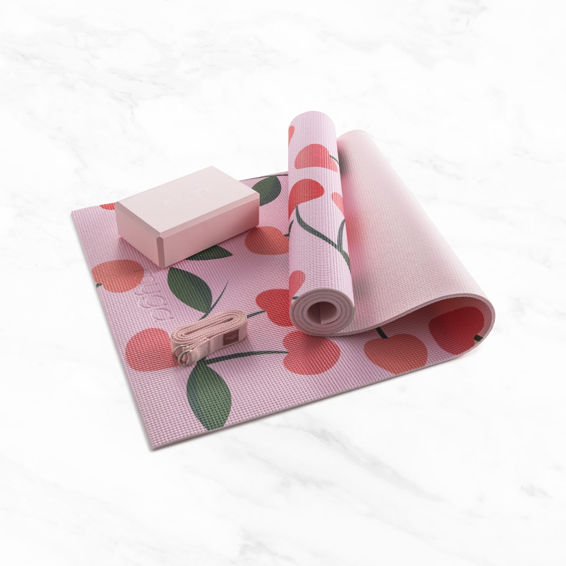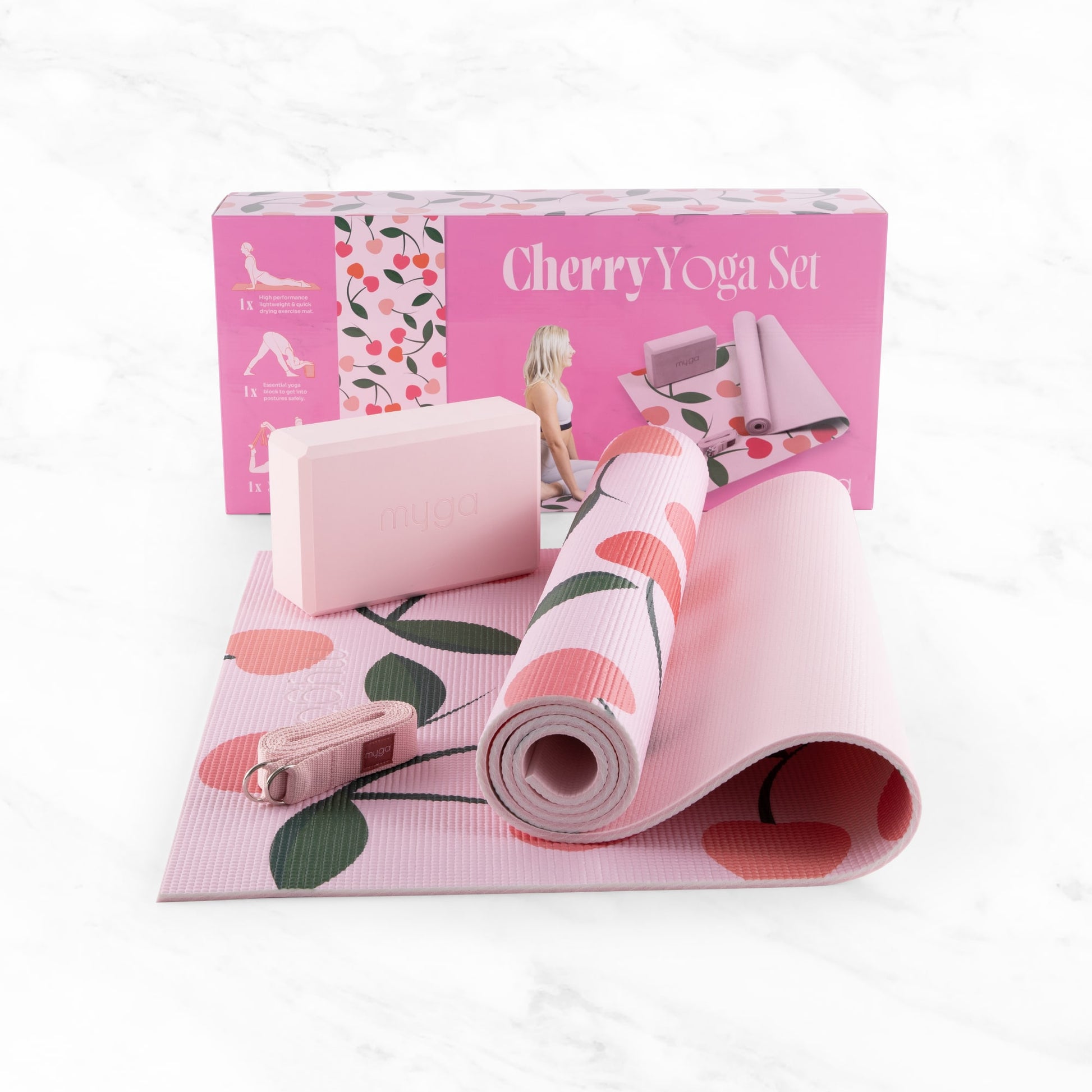 - 1 Cherry Yoga Mat: Offers perfect cushioning and medium grip for stability during exercise. Lightweight, quick-drying, and easy to roll up, this mat is comfortable to carry and ideal for home, studio, or travel.